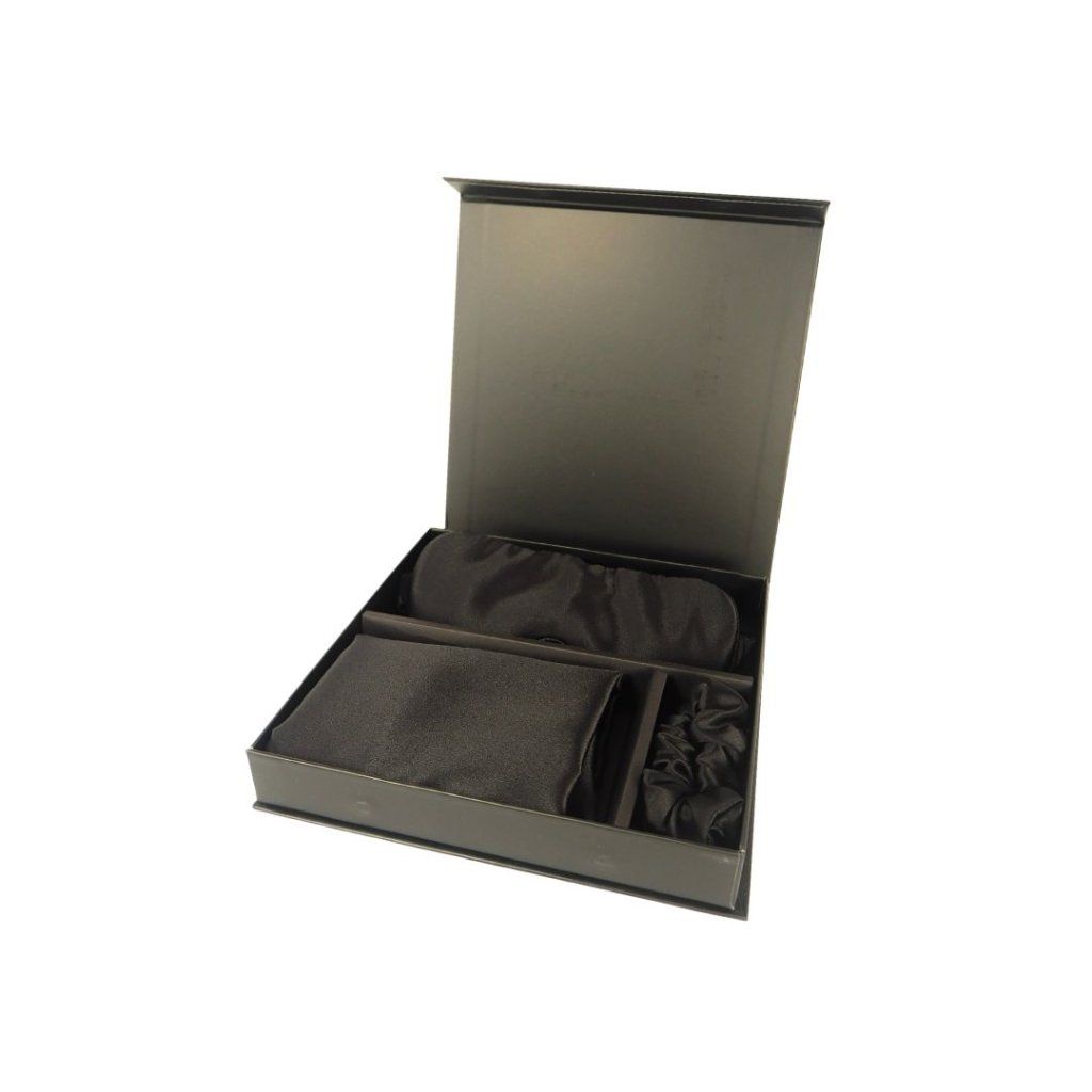 Dárkový set ze 100% hedvábí – maska na oči + scrunchie + povlak na polštář – černý